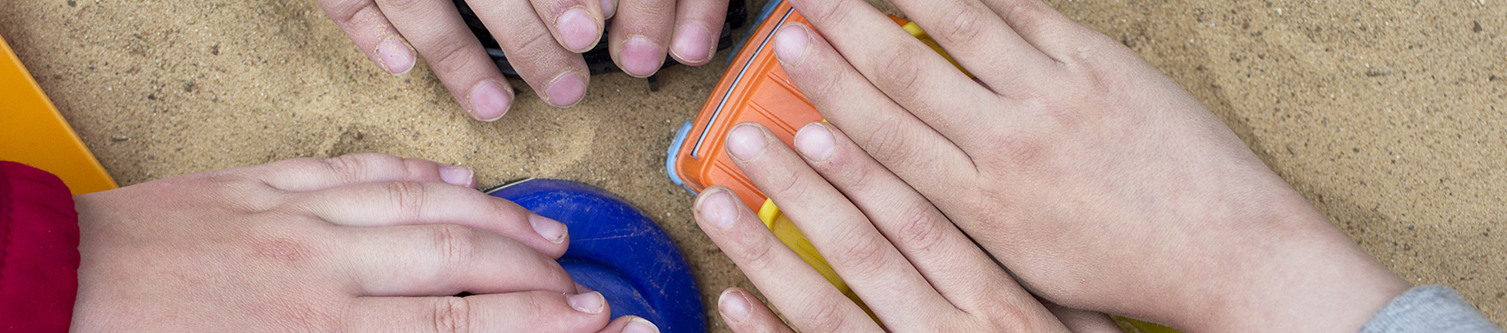 A sandtray therapist’s office is equipped with an extensive collection of miniature objects, sand and water. The sand is contained in a tray with a blue bottom. The client is invited to create a world in the tray by making patterns in the sand or by placing objects into the sandtray in any configuration that feels right.